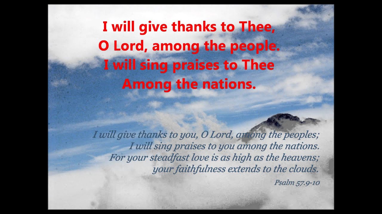 9 I will praise you Lord among the nations. But a grateful one like davids though chased by persecutors and striking the harp in the gloom of a. 11 Be thou exalted O God above the heavens.